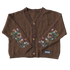 Celebrate the soft, melodic vibes of the Eras Acoustic Piano with this warm brown cardigan. Embroidered piano flowers grace both sleeves, and a blue Eras Tourpatch on the bottom left adds the perfect finishing touch. Cozy, charming, magical, and music-inspired.